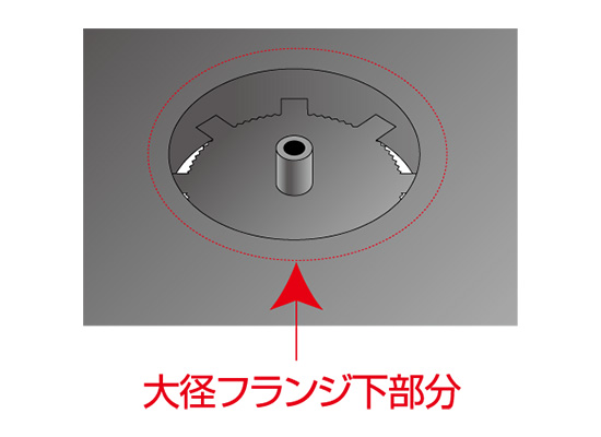 長期間使用していると、水中に含まれるカルシウム塩などが結晶化して大径フランジ下部分の穴が詰まってしまうことがあります。